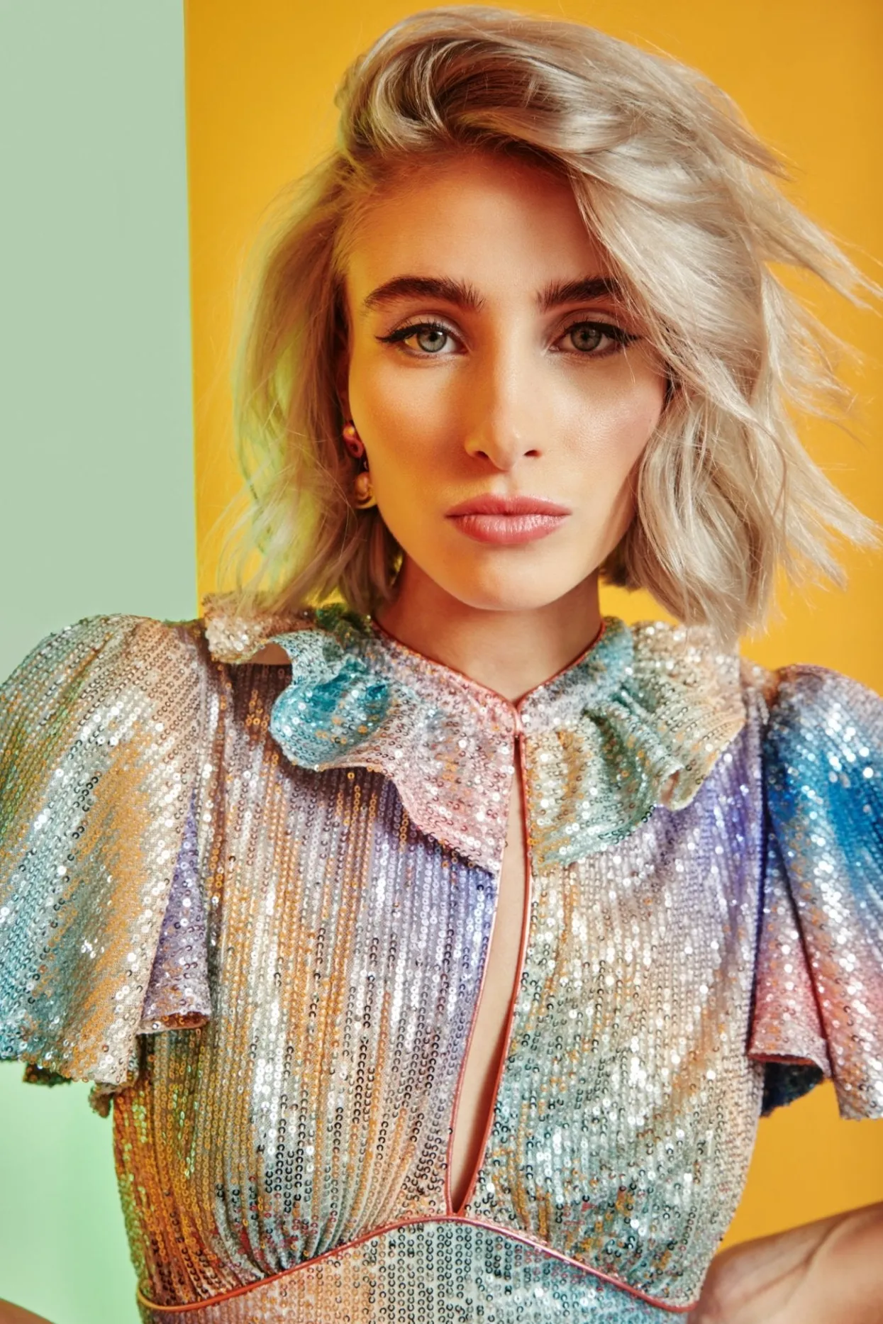Long Sequin Short-Sleeve Dress. With A Buttoned High Neck And A Small Chest Cut-Out, You Can Wear This Buttoned Up Or Leave It Open To Create A Deep V-Neck. The Built-In-Belt Cinches The Design At The Waist, Allowing The Skirt To Flow Freely And Comfortably. The Detail Of The Collar And Loose Sleeves, Paired With Its Stunning Color (Straight Out Of The Sea) Will Make You Shine At Any Event !