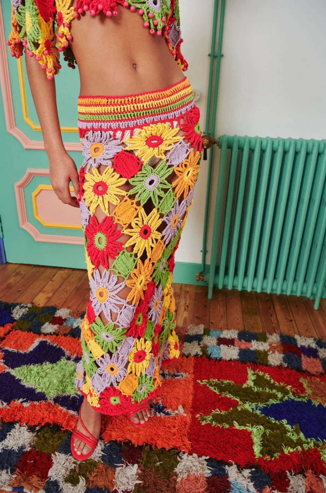 Radiate Sunshine Vibes With Our Open Floral Crochet Maxi Skirt With Zip Back Closure That Hugs Your Hips. Pair With The …