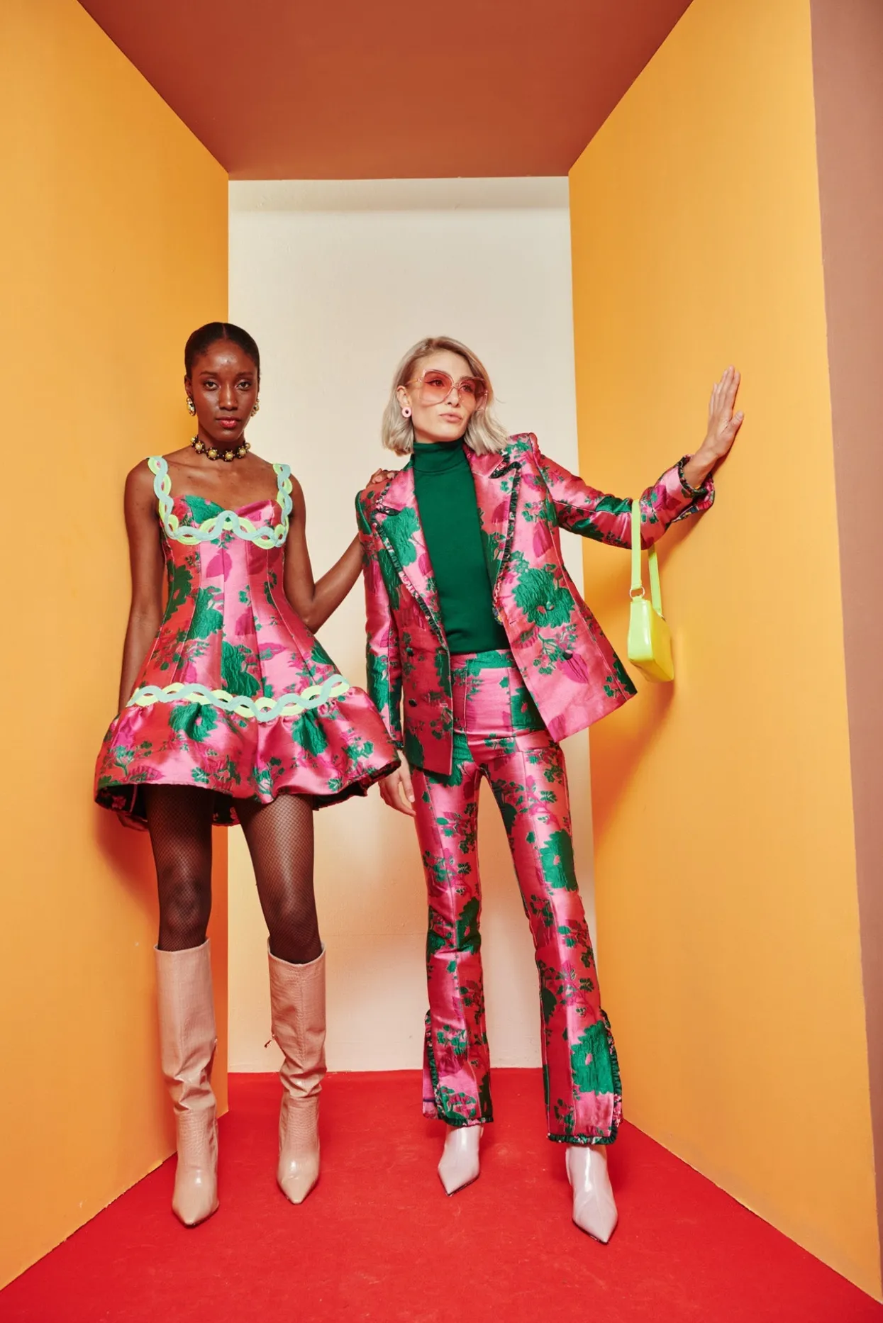 Brocade Straight Legged, High Waisted Pant With An Ankle Cut-Out And A Slight Ruffle Detail On The Bottom. Pair It With Our Tango Jacket For The Full Look!