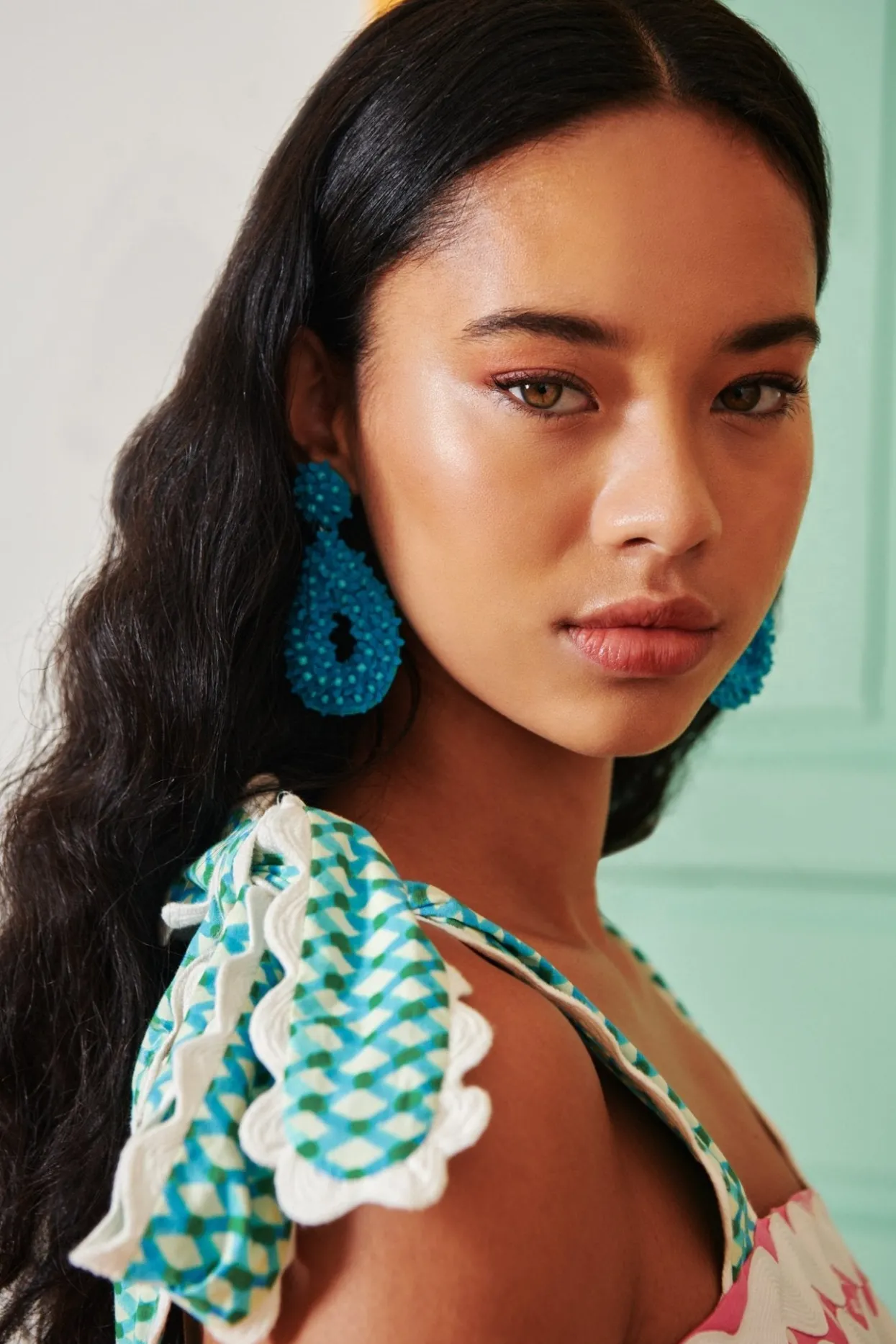 Midi Dress With Adjustable Tie Shoulder Straps And Back Zip Closure. This Whimsical Dress In Constrating Colors With Zigzig Trim Will Be A Favorite All Summer Long.